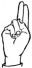 На ћирилици написано ЛАВ БАИНОВИЋ састоји се из 11 слова [?]. Исписано ћириличном једноручном азбуком за глувонеме: